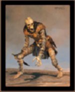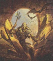 This dark and sinister creature of the night is an undead, neither living nor dead, he is a skeleton lord. His alliance with the night gives him his might. And his red eyes glow in his nightly travels across the ice desert.Together with two pointy horns on his bare skull, his impression is frightening. Although not many have seen him that way, as he is always dressed in a wide black cloak and hood, which hides his head deep within it.